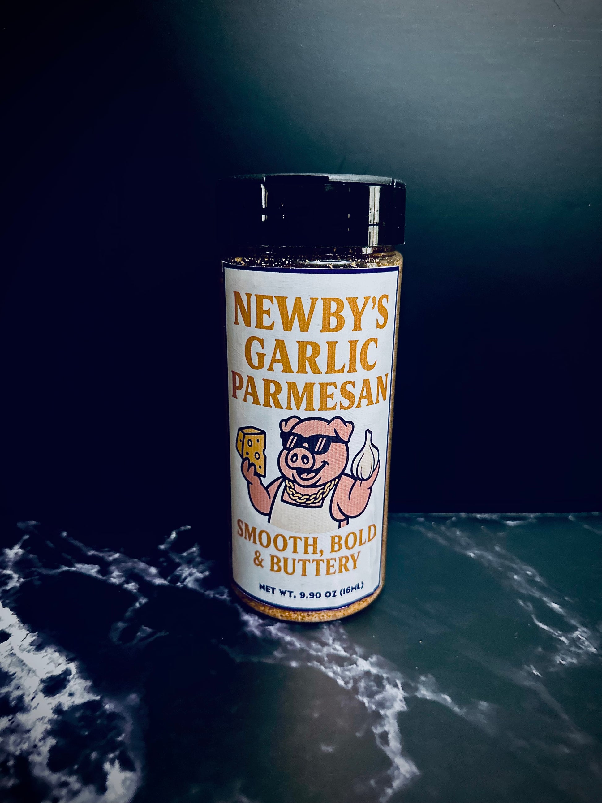 Newby's Garlic Parmesan Rub delivers a smooth, buttery blend of roasted garlic and sharp Parmesan with a touch of herb. It's bold enough for wings, rich enough for the veggies, and smooth enough to make anything crave-worthy. Creamy, Cheesy, and downright Newby's.